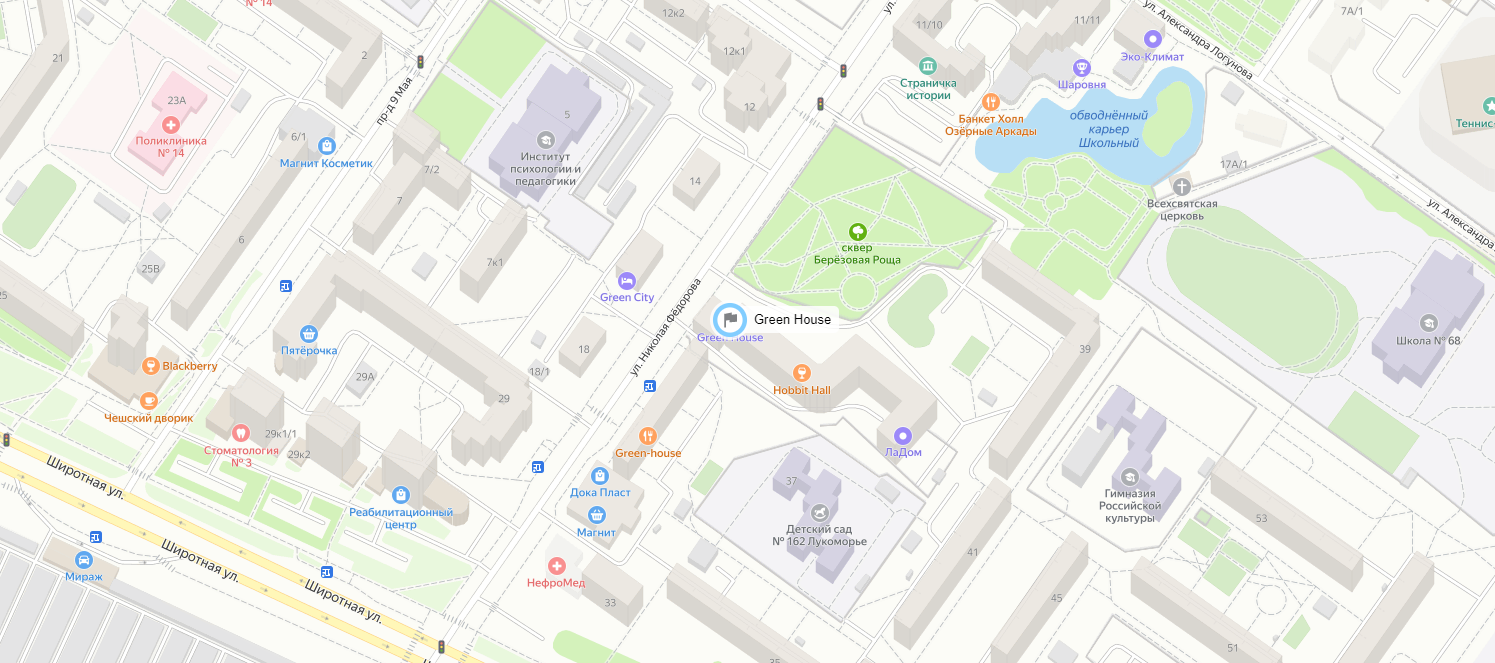 Свадебная церемония состоится 15.06.2023 в 16:00 в Green House, который находится по адресу: ул. Николая Федорова, 9